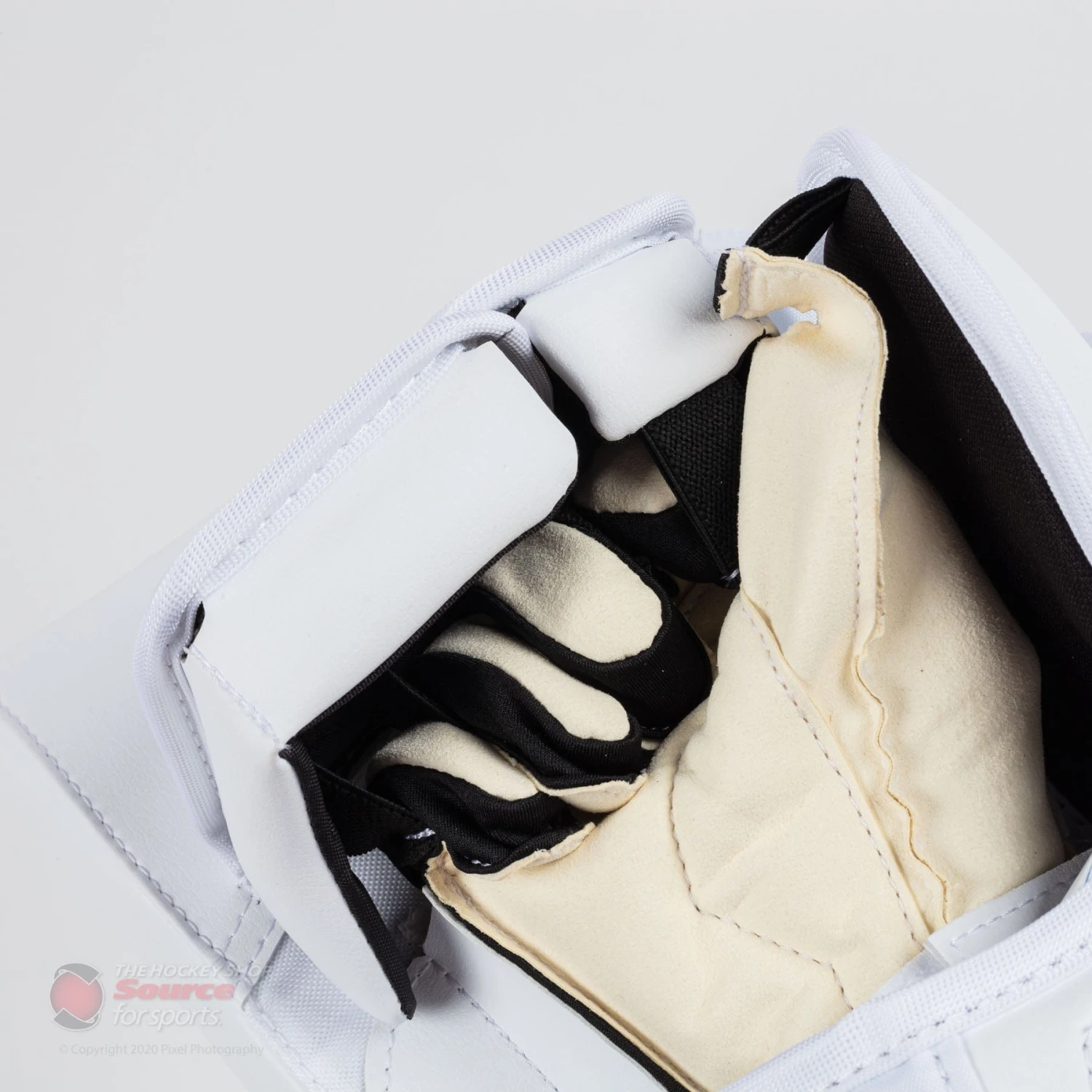 For the recreational goalie that skates 1-2 times per week, Bauer has introduced the GSX line. The GSX blocker will provide the protection needed and perform at a good level for less competitive levels of hockey. Some of the key features include an ivory nash palm and liner, and a dual density one-piece blocker.