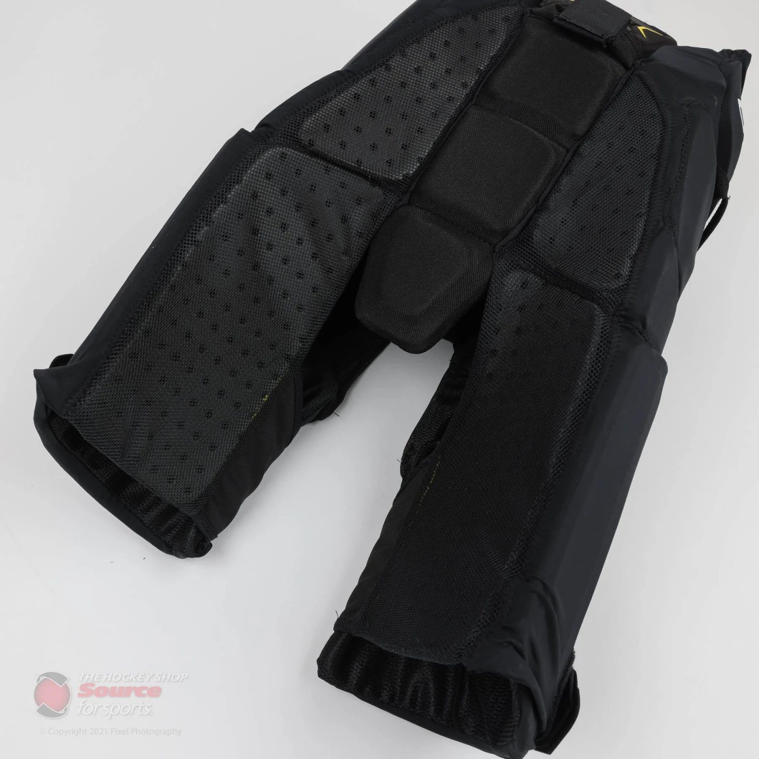 The Supreme ACP Elite girdle features a comfort flex segmentation with molded PE (Polyethylene) throughout the hips. This material is a very durable hard plastic that is also found in top of the line products in the Bauer family. The kidney area is also equipped with a vented armour foam insert that helps protect from unwanted contact in that area.
