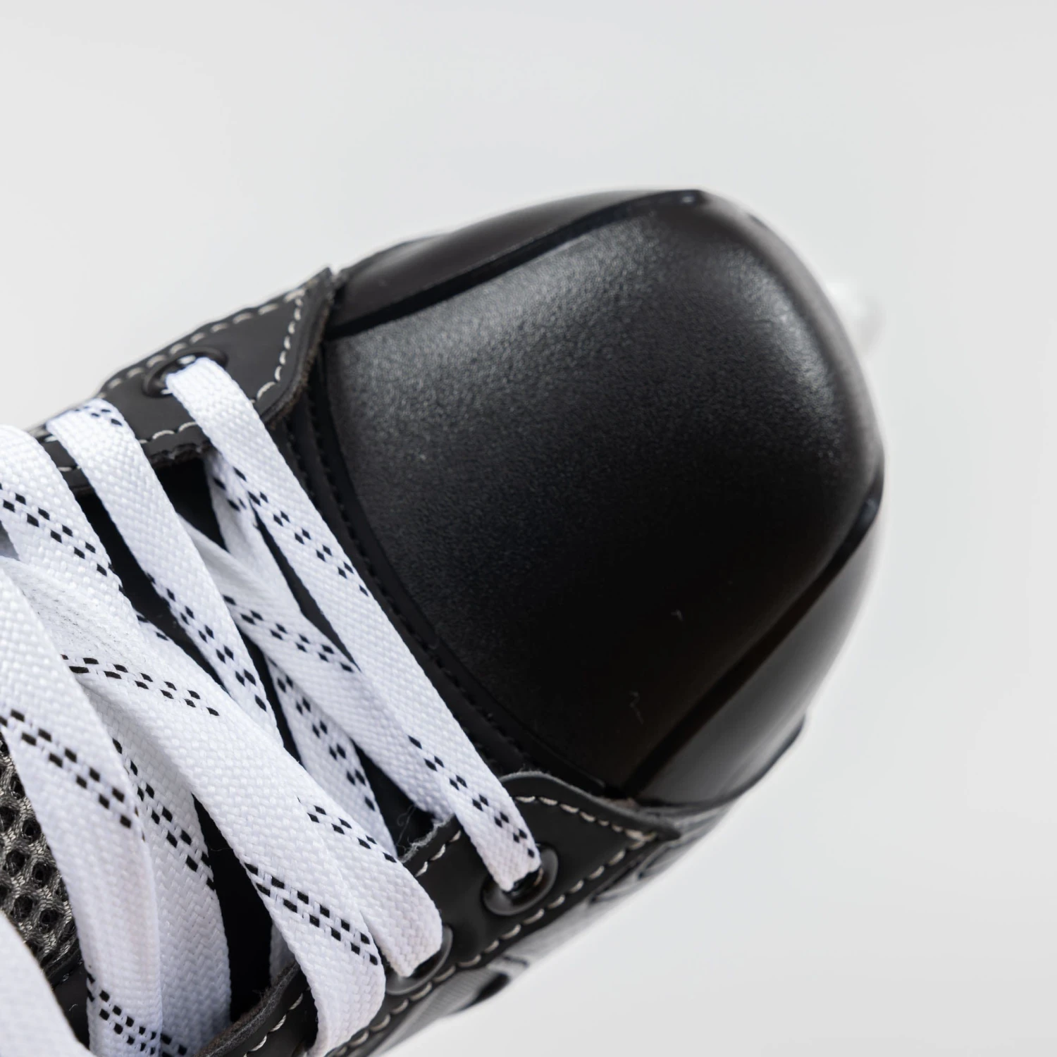 The tongue is made of an updated 30oz pro stock felt material with a mesh metatarsal guard. This combination of comfort and protection is designed to form fit around and over the metatarsus area for extra coverage, and the thick felt coupled with the tough exterior help shield the front ankle area of your foot from harm while you play. With the thinner tongue, stronger skaters may want to move up a level or two in skates to avoid excessive wear and possible lace bite.