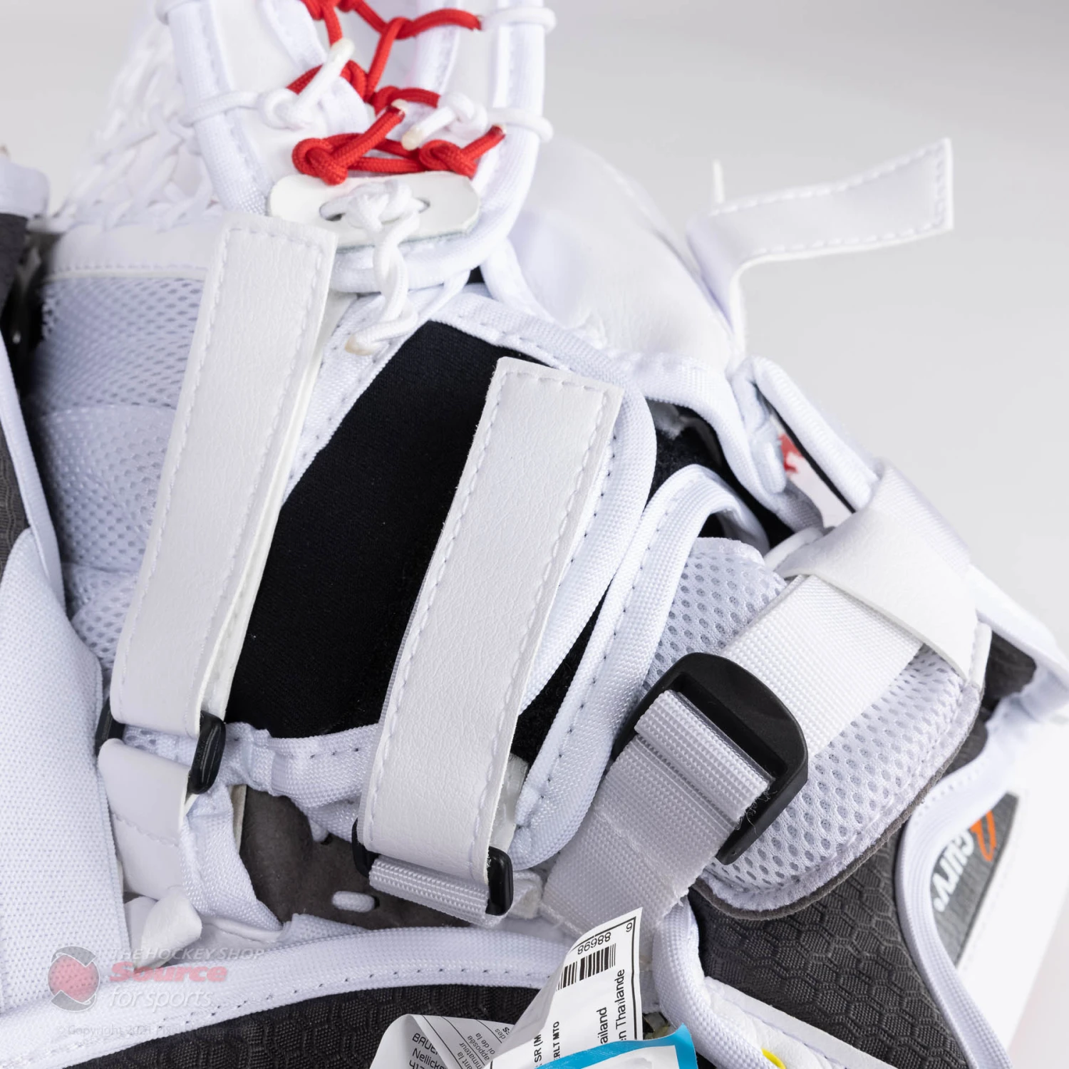 The Vapor Hyperlite catcher is offered in the stock colours of all White, White/Black, White/Navy, White/Blue and White/Red. However, goalies that seek more custom options can customize their dream set on Bauer.com. Bauer also offers their True Design custom graphics program, creating endless possibilities for goalies through their digi-print capabilities.