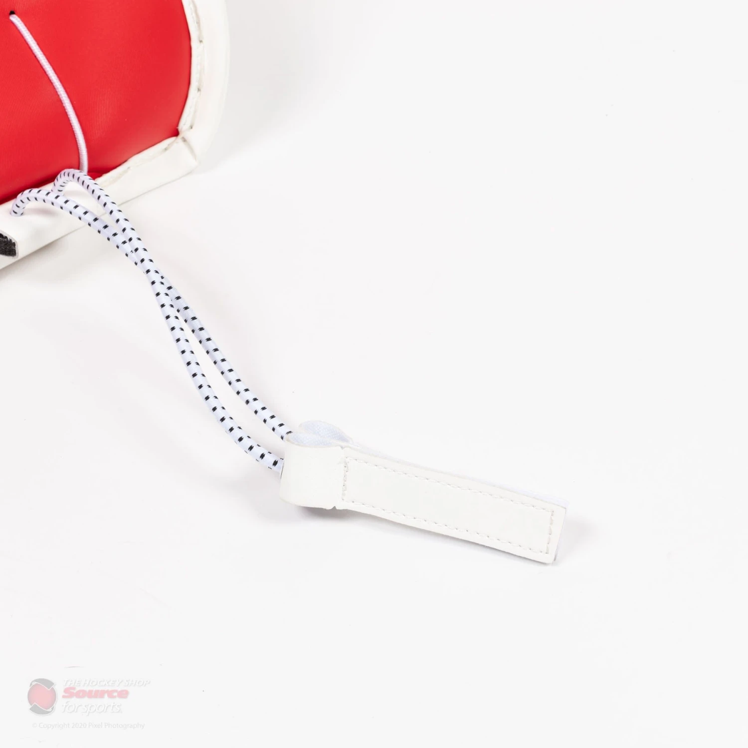 The QMSS Strapping system returns to the Axis 1.9 intermediate leg pads, and for good reason. The lightweight and secure velcro strapping system works well in tandem with the break of the pad and the LiteXcore to provide a familiar loose feeling that allows for the best possible pad rotation. The bungee strapping works well in tandem with the 90-degree boot to allow the goalies skate to drop to the ice just as effectively to provide the most powerful pushes.