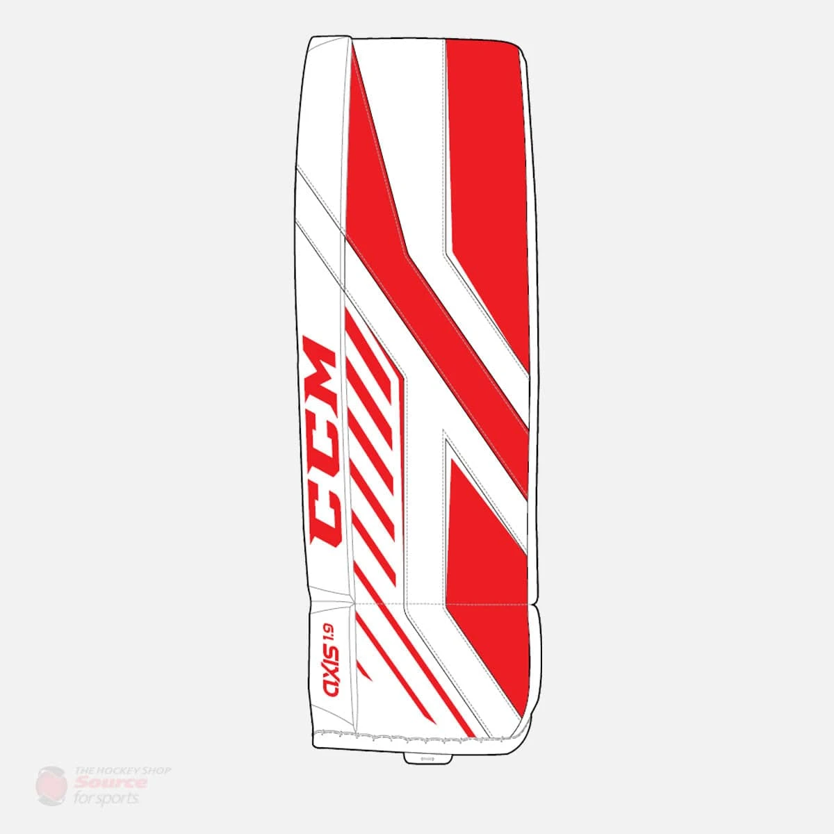 The CCM Axis 1.9 Leg Pads come in Black/Black/Black/Silver, Chicago Blackhawks, Detroit Red Wings, Montreal Canadiens, Toronto Maple Leafs, All White, White/White/Navy/Silver, & White/White/Black/Black and are offered in 30+1, 31+1 and 32+1 sizing.