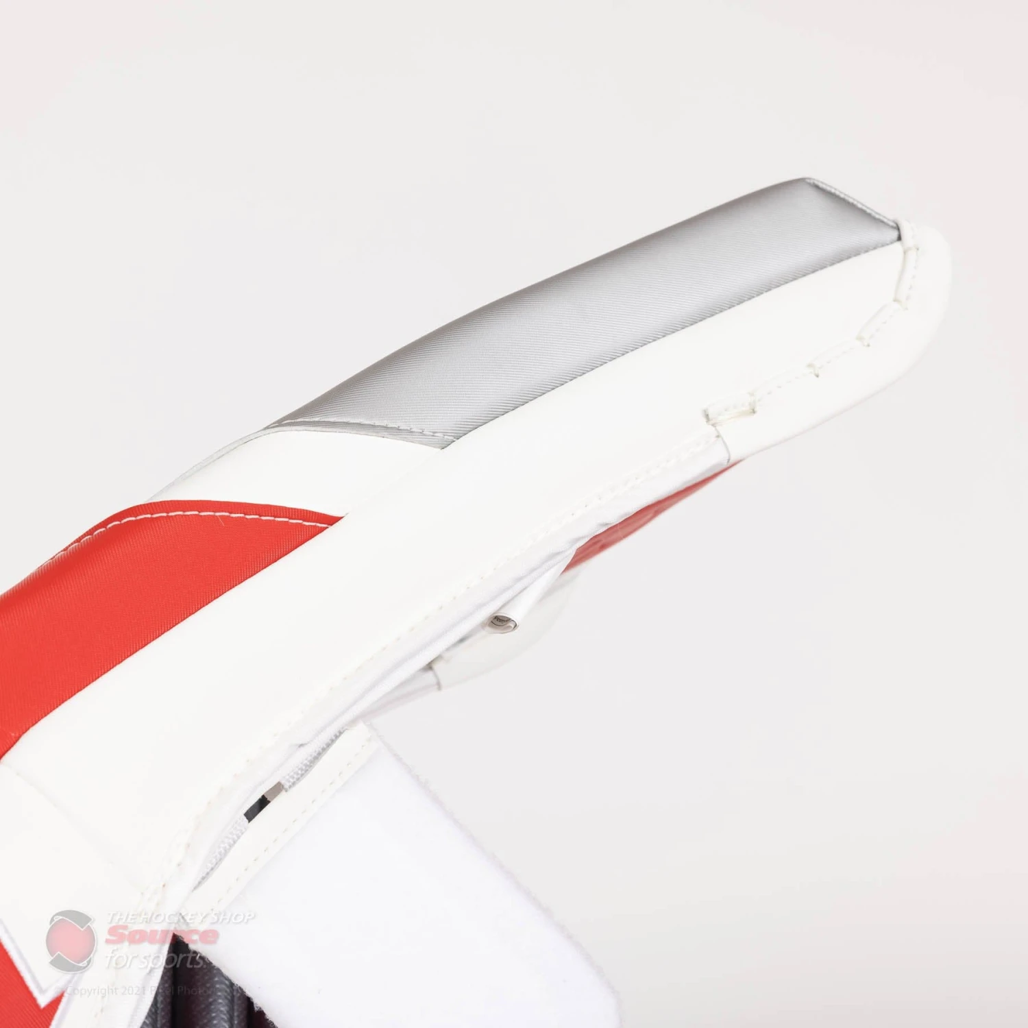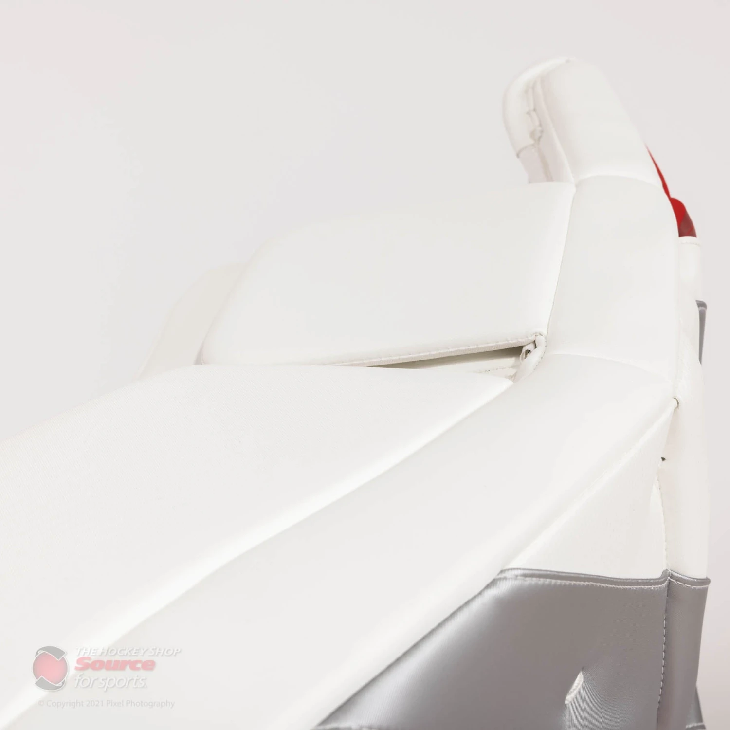 The CCM E-Flex 5 SR Goalie Leg Pads are offered in a range of stock colors, in the stock sizes of 33+1 through 35+2. The E-Flex 5 can be fully customized on CCM’s online customizer. New for this year, the internal rebound foams on the E-Flex 5 can be customized. Goalies have the choice between the soft rebound structure of their Control Rebound Technology, or the lively MaxRebound+ Technology used on CCM’s Axis pads. For custom options and availability, please contact one of our customer service specialists for more details.