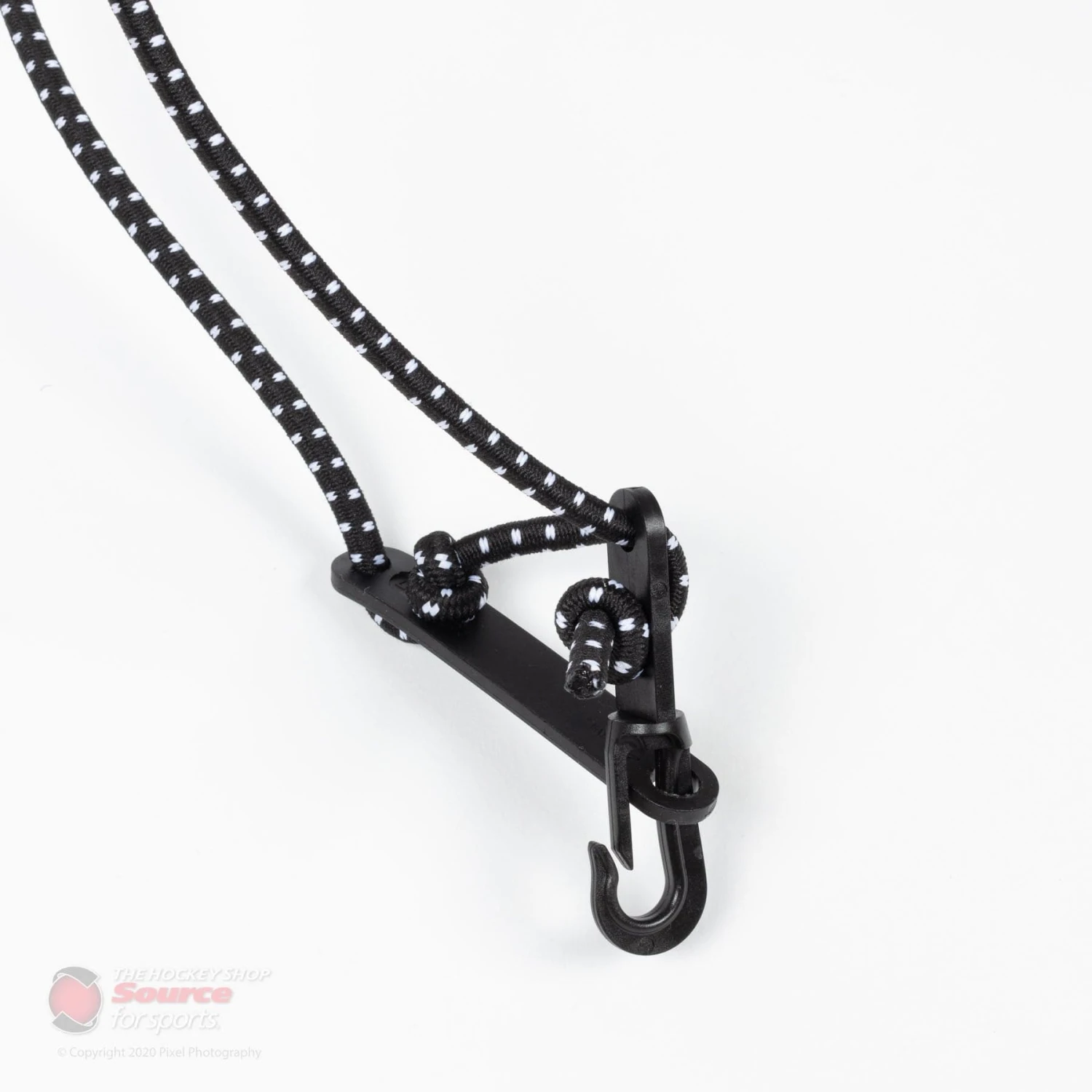 The V9 Int features a redesigned strapping system and calf wrap allowing for a simpler, quicker and lighter system. Vaughn uses a velcro Reactive Rotation Control strap that sits on the upper calf to allow for quicker yet more controlled pad rotation while giving the pad a connected feel. The calf wrap uses a single velcro strap to seal its extended wings that offer better coverage over those of the VE8 shut. While still a fairly tight fitting leg channel, the V9 Int has a widened inner leg cradle overall when compared to previous Velocity pads giving goals the feel of a tight fitting leg channel while offering the better rotation associated with a looser leg channel. Finally, the V9 Int features a velcro bootstrap as well as the same bungee toe tie system seen on the SLR2 leg pads.